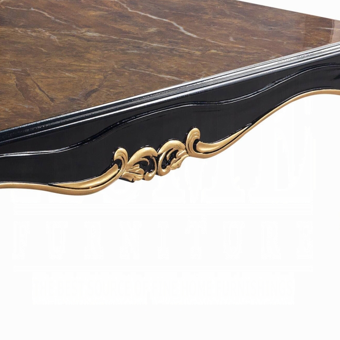 | In a modern shiny piano black and gold colorway, the Betria coffee table is both contemporary and timeless. Gold paint accentuates the carved details against the black foundation. Engineered stone makes up the tabletop for an eye-catching and durable finish. Perfect in a formal living room setting to impress your guests. *Please note that the base price only includes (1) Coffee Table. Please add the additional End Table to customize this set to your liking.