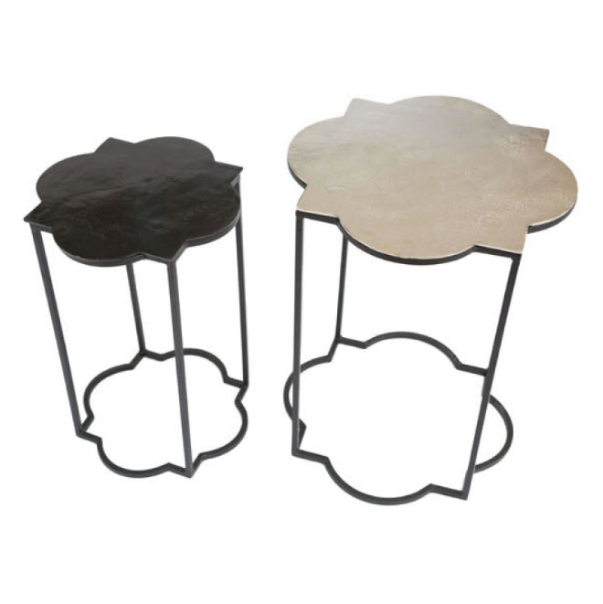 | Quatrefoil design from top to bottom is what makes these side tables so striking. Sophisticated styling combined with a sturdy iron base and lightweight, easy-care aluminum tops make them a must-have.