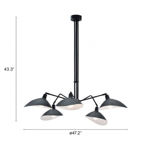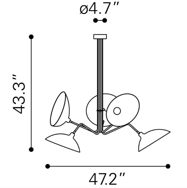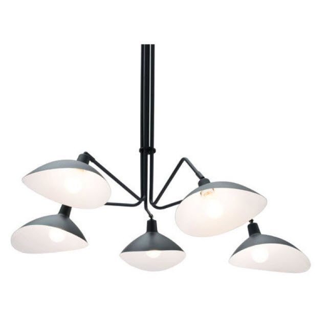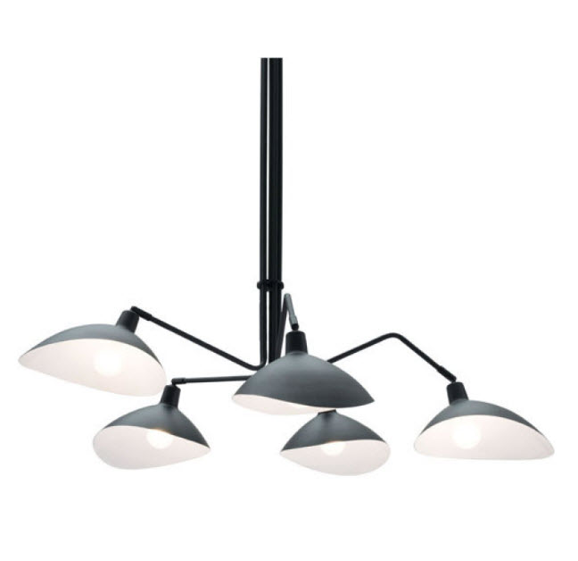 | Form meets function. This modern chandelier with its attached scoop-like shades that rotate up and down or from side to side will throw light exactly where you need it. It will add intrigue to any room in your home or office space.