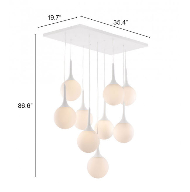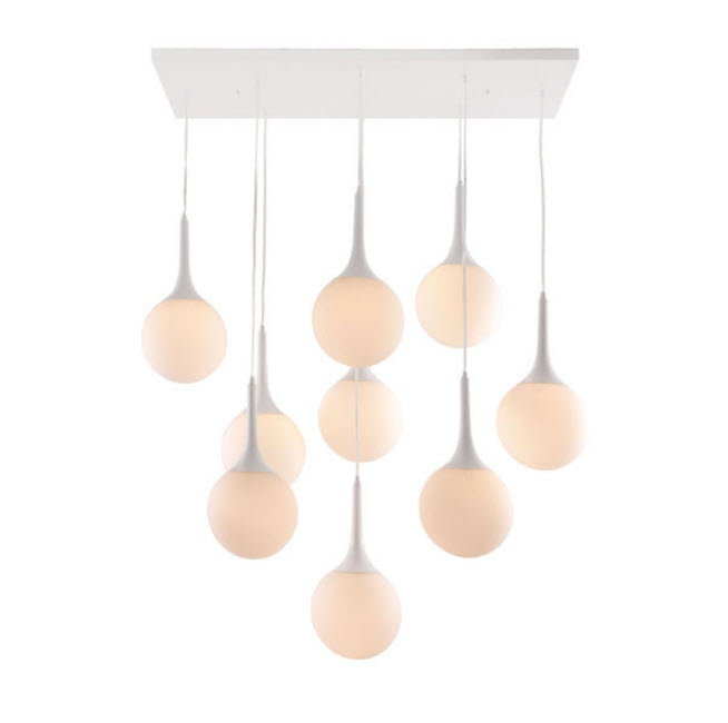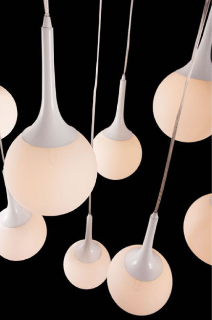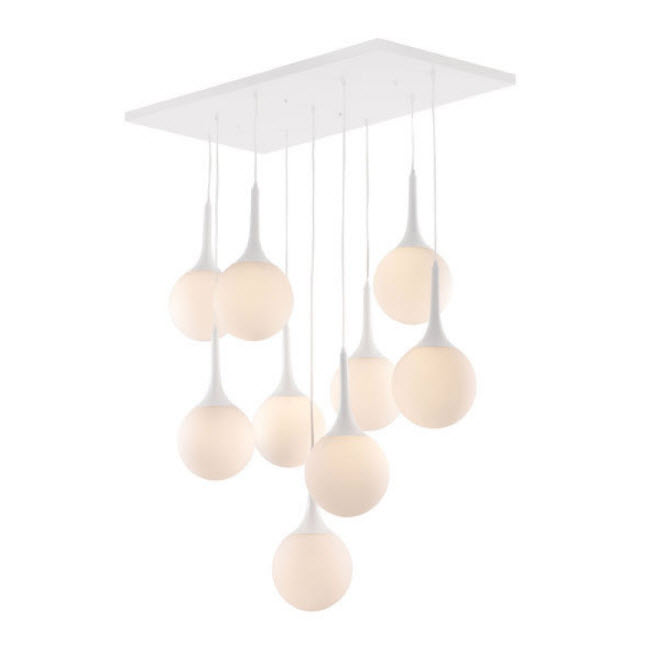 | If you're aiming for a winter castle look, you can't do better. The frosted glow of the Epsilon Ceiling Lamp's nine pendant orbs warms up any space. The base is a glossy painted steel with frosted glass shades adding dimension to any room. Bulbs not included. Bulbs sold separately.