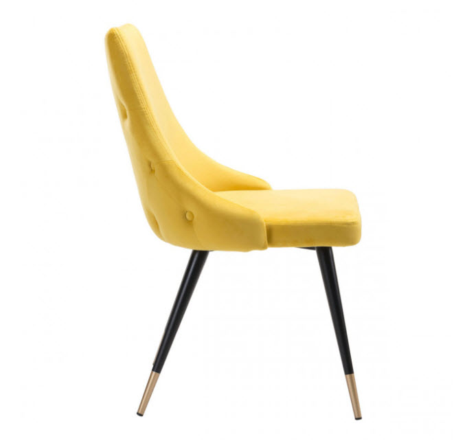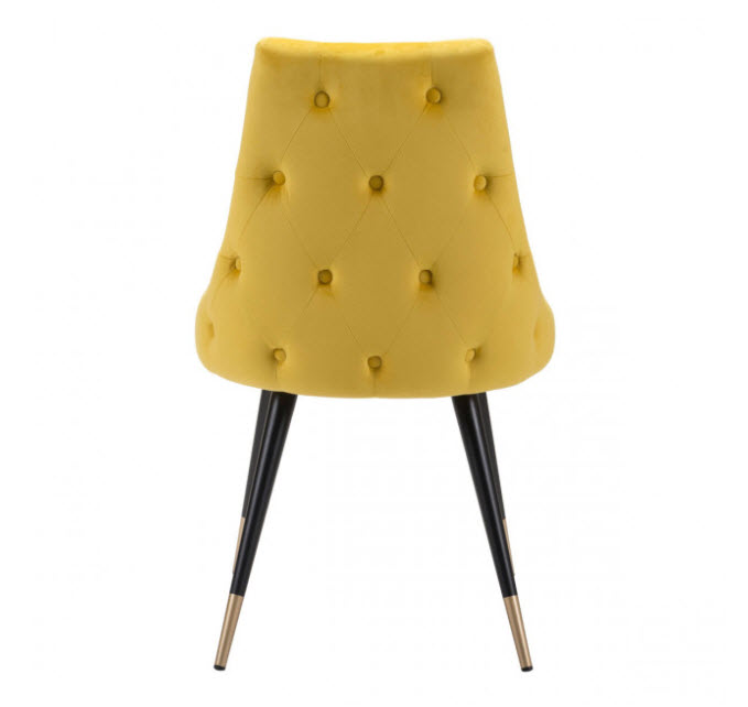 | If fashion is your passion, then this sophisticated side chair is for you. Make a statement around your table, at your desk or across from your sofa. Its tapered back with button tufting is easy on the eyes and gorgeous from every angle. Slim pencil legs end in brushed brass giving it an elegant finish.