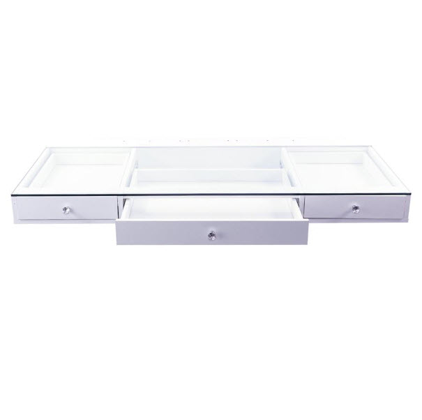 | Featuring a flawless clear glass top and three beautiful pull out drawers, the SlayStation® perfectly fits in most spaces for to glamorously showcase all of your makeup and accessories right where you want them!