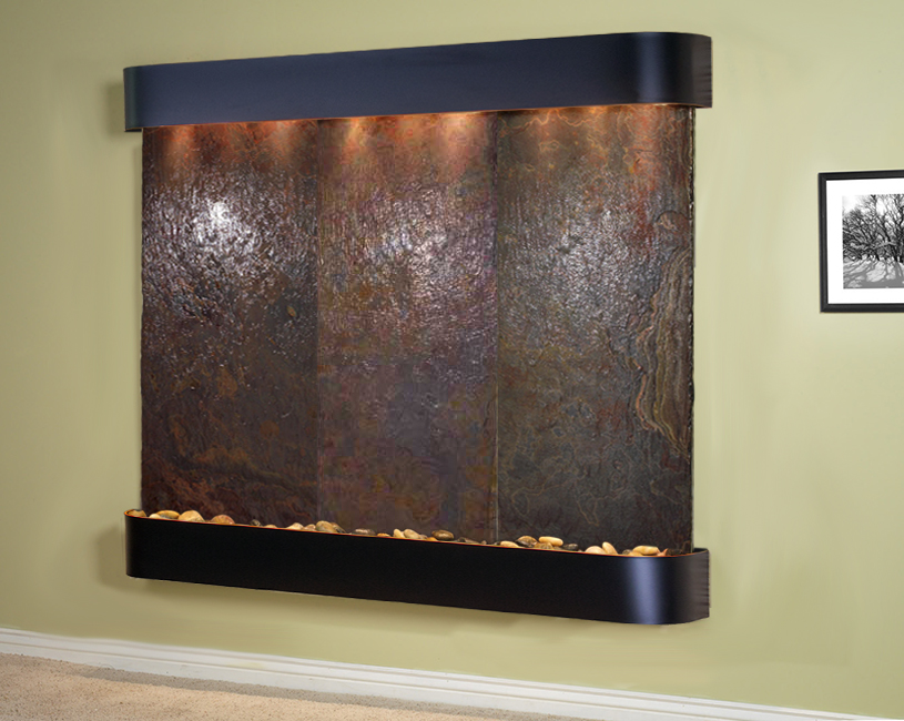 | The Solitude River Waterfall features 3 stones side-by-side for a large, wall-mounted water feature for your home or office.