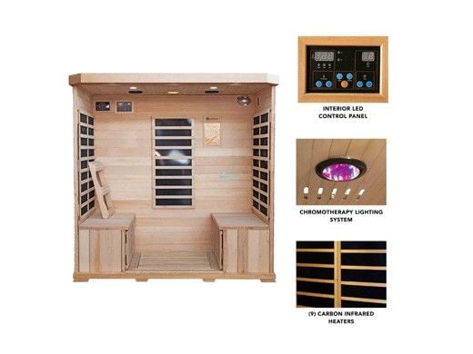 Create the ultimate retreat from everyday stress in the comfort of your own home. The Sonoma Four-Person FAR Infrared Sauna is the perfect combination of comfort, size, and functional design. Nine, perfectly positioned, carbon heaters provide heat for up to four people, creating the perfect sanctuary for friends and family members. This luxurious sauna room offers a spacious interior that allows you to relax with ease. Two full-length windows and a full-length glass door feature an elegant, frosted pattern for privacy while maintaining the openness. A full-spectrum, color therapy light and an integrated sound system with wireless connectivity enhances your at-home sauna experience.