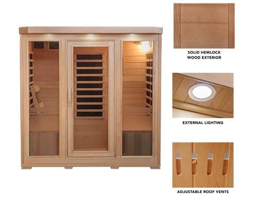 Sauna room seats up to four adults
