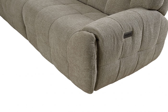 | The Southwold Power Sectional delivers premium comfort with oversized seating and elegant biscuit tufting. Upholstered in high-quality chenille and available in beige, butterscotch, dark gray, or jade green, it features smooth power recliners, dual USB-A & USB-C ports on both control panels, and a console with hidden removable cup holders. A built-in wireless charging station adds modern convenience to this refined, transitional design.