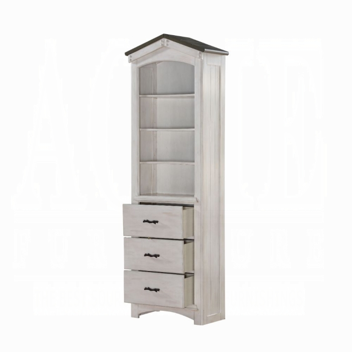 This Tree House loft bed in rustic oak finish is sturdy enough to ensure safety of your children. Put it in any youth bedroom for your children to create memorable adventures. This loft bed presents a tree house design with windows and roof above the upper part. Bookshelf cabinet sold separately. Please note that the base price includes (1) bunk bed. Please add the bookshelf to customize this set to your liking. Please note that the Bookcase Cabinet is only available in Weathered White & Washed Gray Finish
