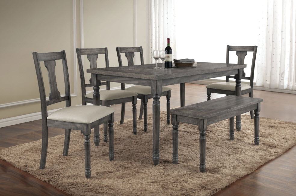 | The Wallace Collection offers the perfect place to gather with friends and family during all special occasions. With its rustic wood and weathered gray finish, it will add a warm glow to the room. The table offers plenty of room for everyone to comfortably dine. The bench and chairs are wooden, which gives the table an authentic feel. *Please note that the base price only includes (1) Dining Table. Please add the additional items to customize this set to your liking.